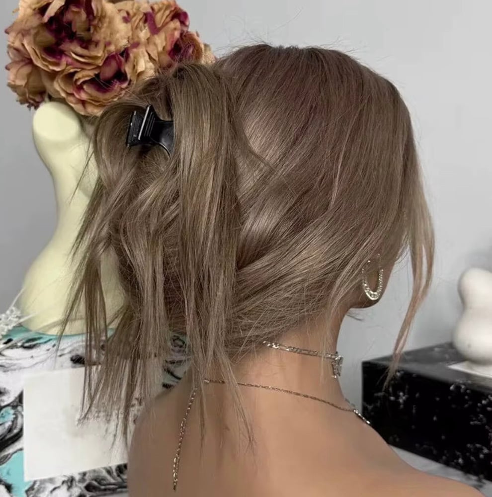 Elevate your look with our 20-inch luxury human hair wig, designed for effortless beauty and a flawless finish. This unit features a stunning ash brown/bronde tone with natural dimension, perfect for an everyday glam or elevated style.